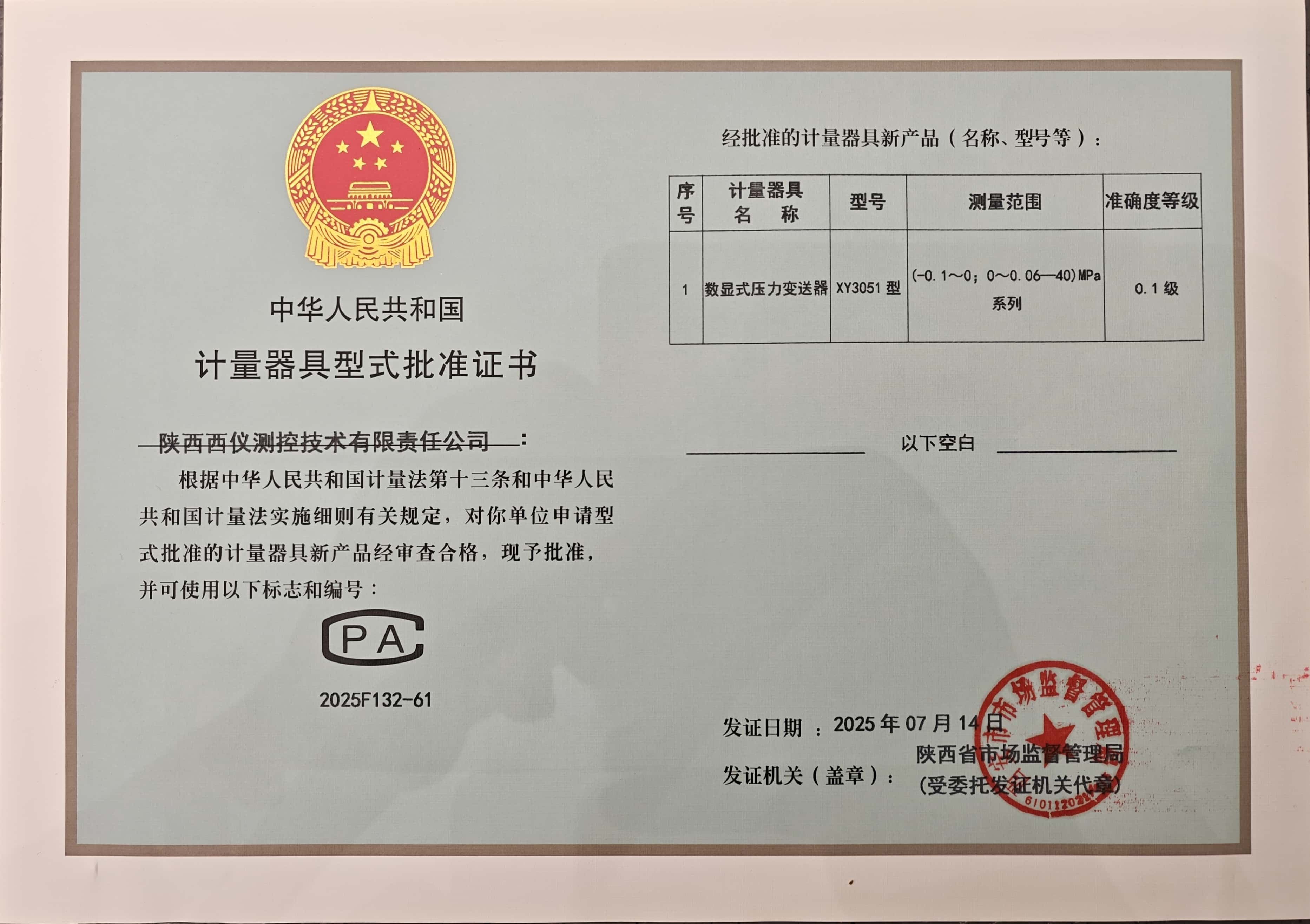 西仪测控产品简介及压力变送器CPA型式批准证书